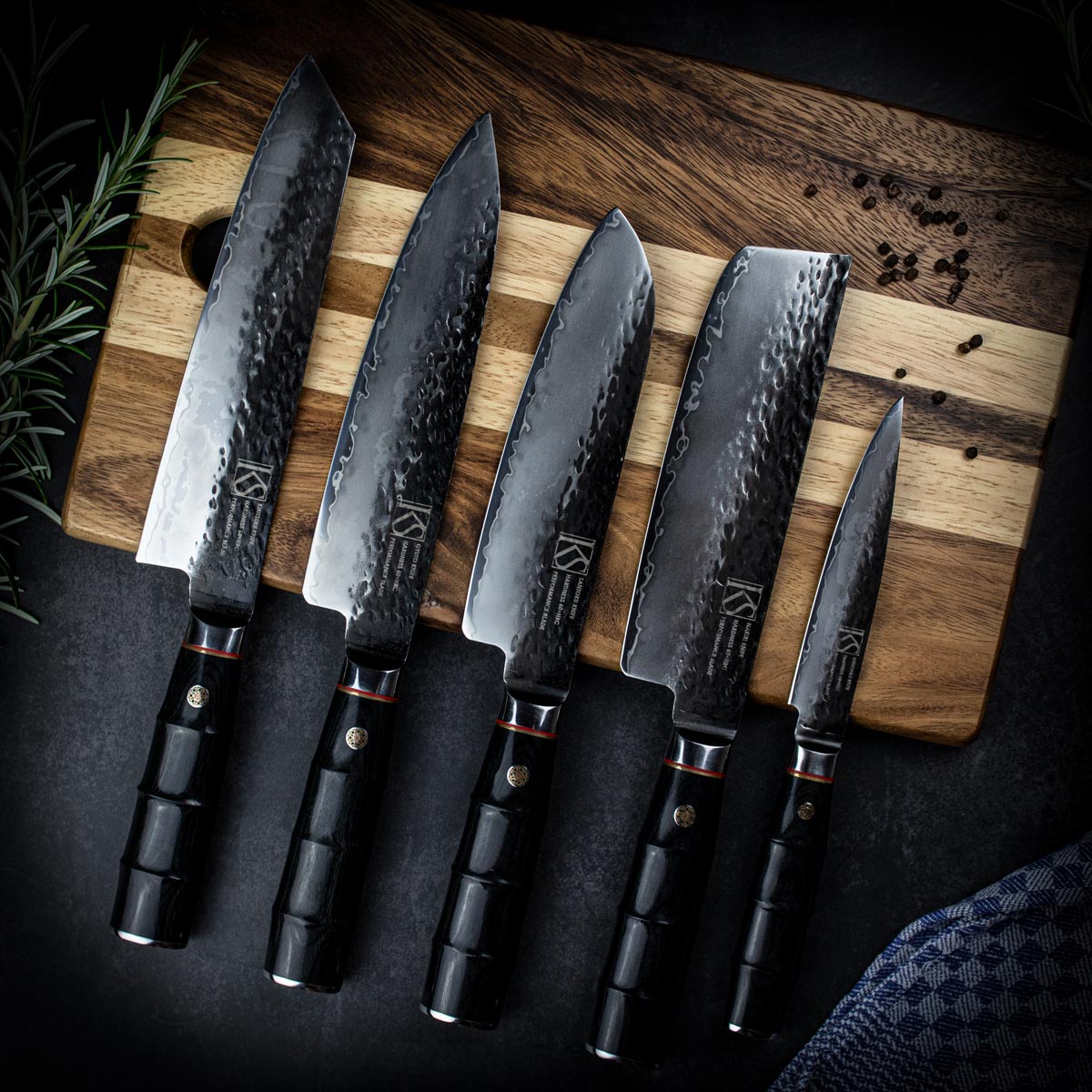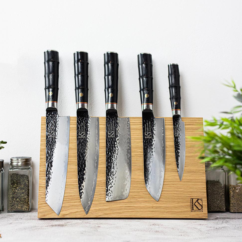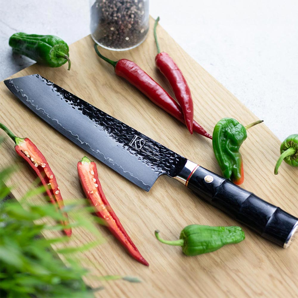 Kraftstein Kochmesser zeichnen sich durch ihre außergewöhnliche Schärfe aus, die auf hochwertigem Kohlenstoffstahl mit einem Härtegrad von mindestens 60+ HRC basiert. Dieser Stahl bietet eine feinkörnige Struktur und lässt sich präzise schleifen, was zu einer extrem scharfen und langlebigen Klinge führt. Die hohe Härte sorgt dafür, dass die Messer ihre Schärfe länger halten und präzise Schnitte ermöglichen, ideal für alle Kochaufgaben.
